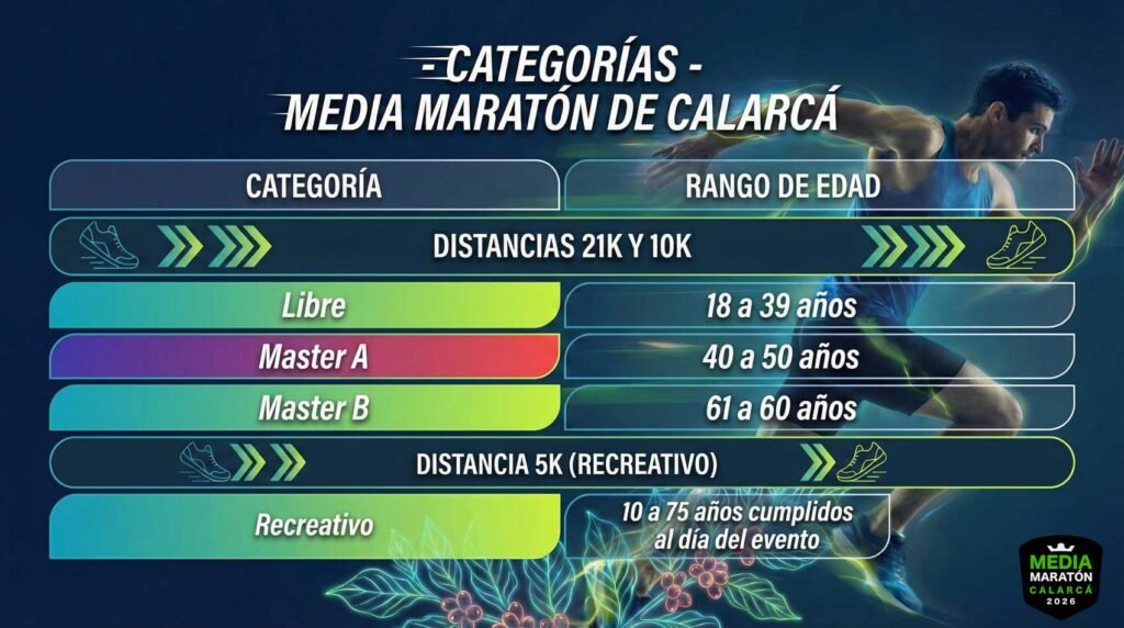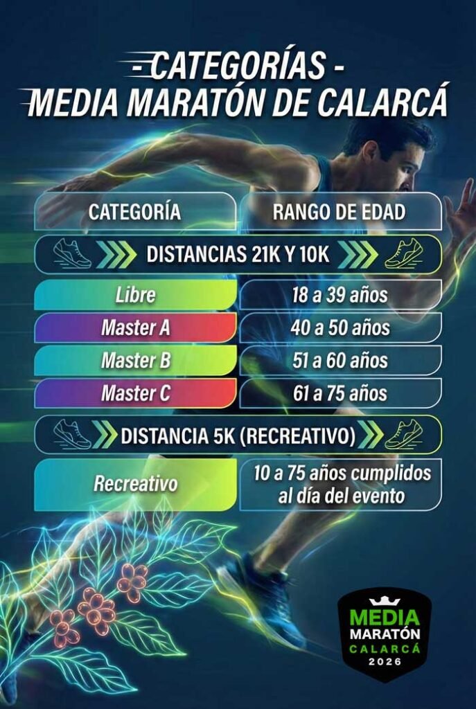 ¡Prepárate para vivir una experiencia deportiva inolvidable en el corazón cafetero de Colombia! El 16 de agosto de 2026, Calarcá, la segunda ciudad del departamento del Quindío, te invita a participar en la Media Maratón Calarcá, un evento que combina deporte, naturaleza y cultura cafetera. Este evento ofrece tres categorías para todos los niveles: los 5K y 10K, recorridos netamente urbanos por las principales calles tradicionales del municipio con vías completamente cerradas para tu seguridad; y la categoría reina de 21 kilómetros, el recorrido más extenso que te llevará más allá de la zona urbana, atravesando vías asfaltadas rodeadas de exuberantes cafetales y plataneras, pasando por sectores como La Bella, Potosí y Quebradanegra, donde los paisajes de la cordillera te dejarán sin aliento [3]. Realizado en el marco del prestigioso Gran Fondo Quindío, este evento garantiza un clima excepcional, seguridad total y una logística impecable. Compite por atractivos premios mientras disfrutas de la tranquilidad, hospitalidad y belleza natural que caracteriza a esta región única. ¡Elige tu distancia y corre entre montañas, café y tradición!